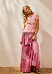 Beginning: Archive At UO Orange Overdyed Patchwork Maxi Skirt @ £54.00, Middle: Archive At UO Blue Patchwork Maxi Skirt @ £54.00, End: Archive At UO Pink Patchwork Maxi Skirt @ £54.00.