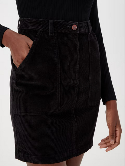 H&M polo-neck jumper @ £12.99, Matalan black cord mini skirt @ £10.50, Topshop karter lace up boot in black patent croc on ASOS @ £34.00, UO trish fluffy faux fur scarf @ £8.00