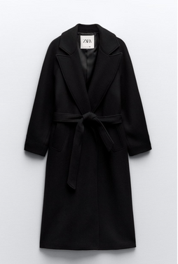 Below: Warehouse premium curly animal print fur coat @ £95.00 Superdry faux fur lined longline afghan coat @ £144.99 ZARA Longline belted wool blend coat @ £119.00, PULL&BEAR faux shearling coat @ £49.99